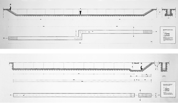 Access by means of a staircase at each end 1.5m deep, 0.8m wide, total length 40m.